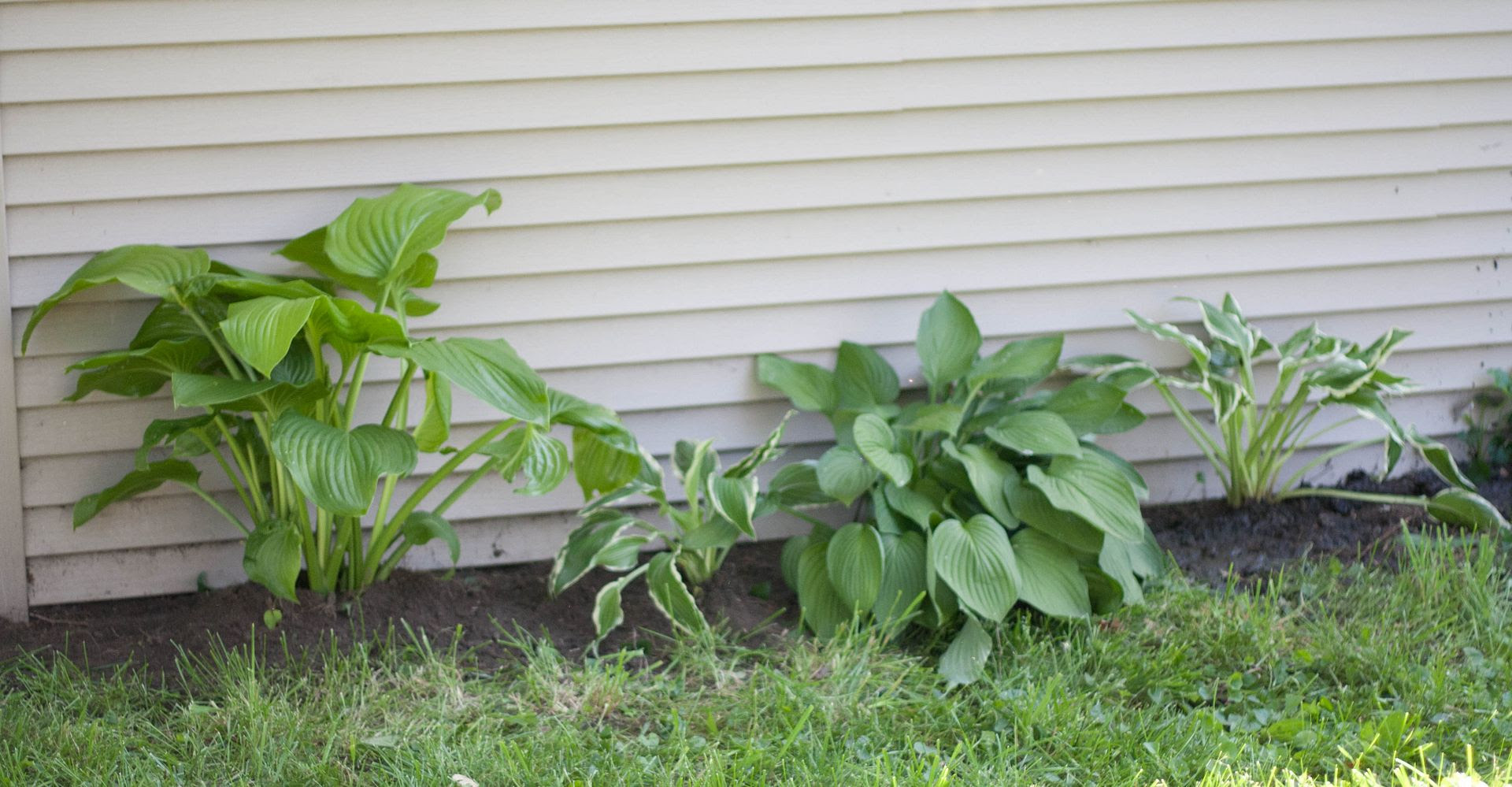 I wanted the hostas for a nice shady spot along the side of the garage. You can see I had two little guys planted there last year.