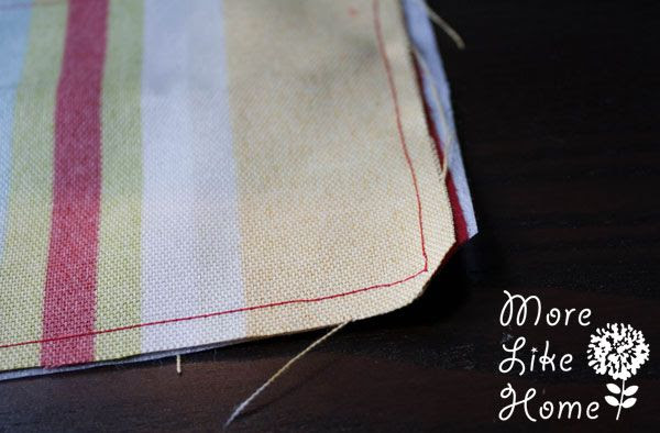 Sew along the bottom of the pocket with a 1/4" seam allowance, turn the corner, and sew up the folded edge, right along the edge.