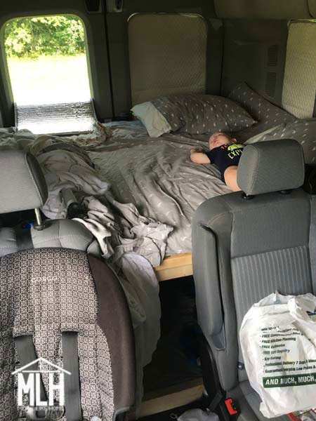 I pretty closely followed this tutorial and used Reflectix insulation for the base of my window shades, then backed them with pre-quilted fabric. Could you use the Reflectix without the backing? Probably. It still insulates pretty well on its own, and it would save you some time and money for sure. So if funds are tight, give it a try! But the quilted fabric is great for several reasons: it gives more stability to the shades, adds another layer of insulation, and softens the interior of the van. I would use the quilted backing again in a heartbeat for that last reason alone. It helps to dampen sound and feels less stark than the plain Reflectix. It feels so cozy and quiet in there!
